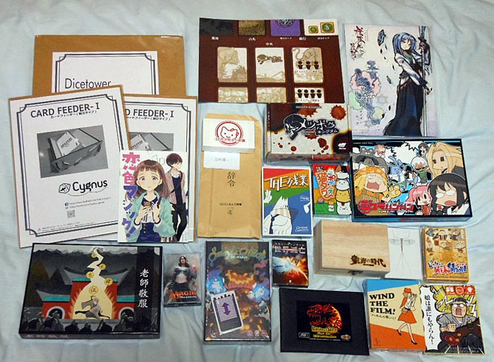 報告 ゲームマーケット2016秋 Author melkul Date 2016年12月18日 行かずに後悔するよりもは、行って後悔しようぜ! ということで、急に思い立って東京まで行ってきました。 夜行バスで行って、開店同時から並び、16時前には帰宅するという弾丸ツアー。 戦果はこちら。 内わけは、 tama: 老